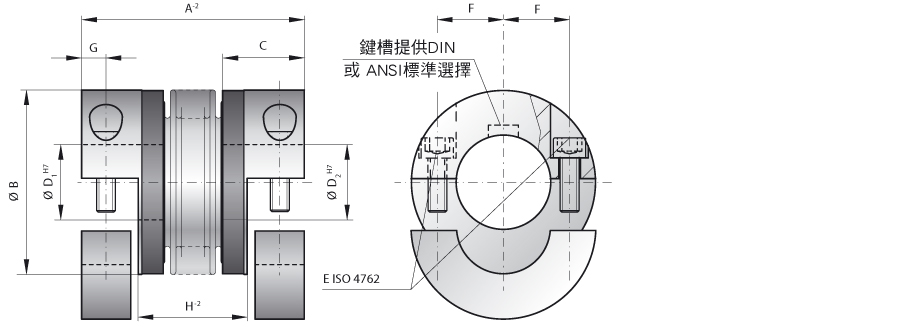 兩個全開式夾緊軸套各有二顆夾緊螺絲。